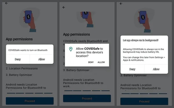 In regards to enabling location permissions, it’s important to note this isn’t the same as turning on location services. Location permissions must be enabled for COVIDSafe to access Bluetooth on Android and Apple devices. And access to your phone’s battery optimiser is required keep the app running in the background.