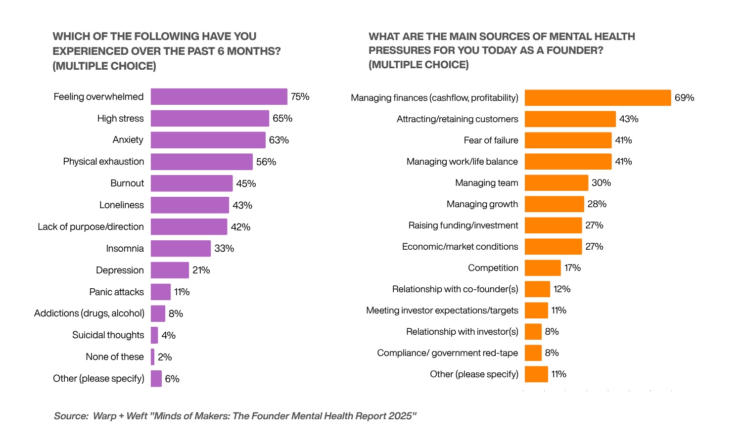 The “Minds of Makers: The Founder Mental Health Report 2025” is available for free download with deeper insights into these findings at warpandweft.au