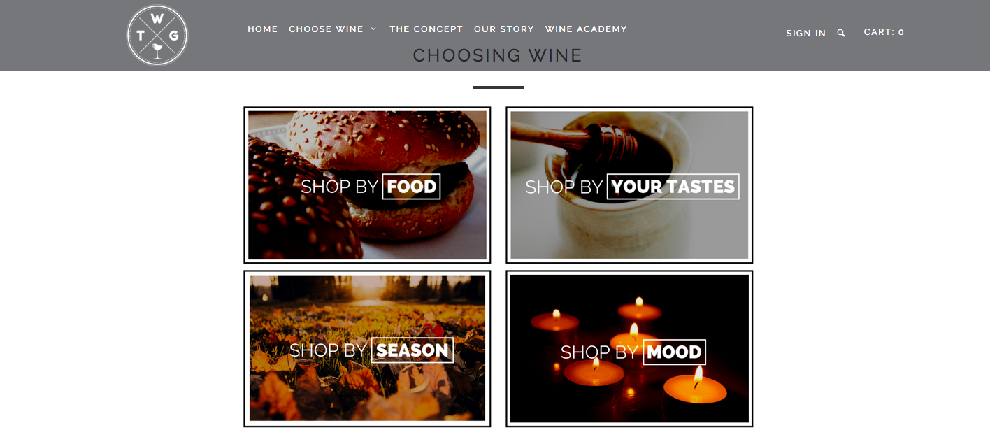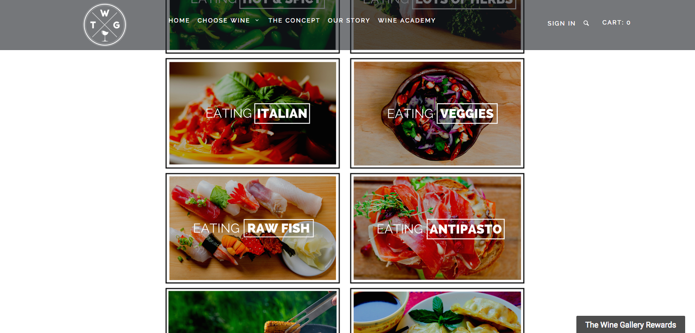 So how does it work? Well, once you go to thewinegallery.com.au, you can find out what wine to buy by selecting either ‘food’, ‘tastes’, ‘season’ or ‘mood’. If you ‘shop by food’, for instance, the website will offer you a number of food options to select. You simply choose what you’re planning to eat with the wine – like red meat, white meat, pizza, seafood, hot and spicy, lots of herbs, Italian, veggies, raw fish, antipasto, BBQ, Asian, cheese and dessert. Once you’ve selected what you’re eating, The Wine Gallery will present one, two or three wine options, with succinct information about it for the customer to make a quick purchasing decision. The process is the same if you shop by ‘mood’, ‘tastes’, or ‘season’ – just the categories are different.