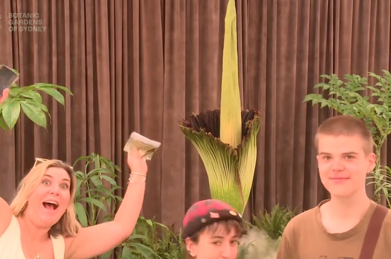 The corpse flower blooms at Sydney's Botanic Gardens. Screenshot: Royal Botanic Gardens Sydney