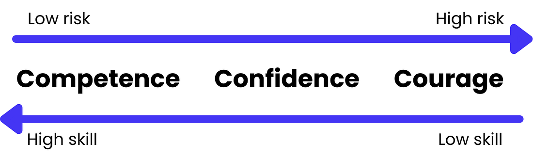 Whether something falls into your zone of competence, confidence or courage depends on two factors: risk and skill.