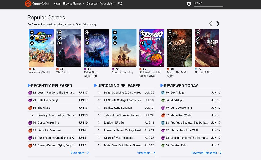 OpenCritic, an alternative review aggregator.