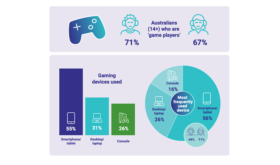 The majority of both men and women in Australia play games in some form. Though many use smartphones to do so. That’s especially the case with gamers who identify as women.
