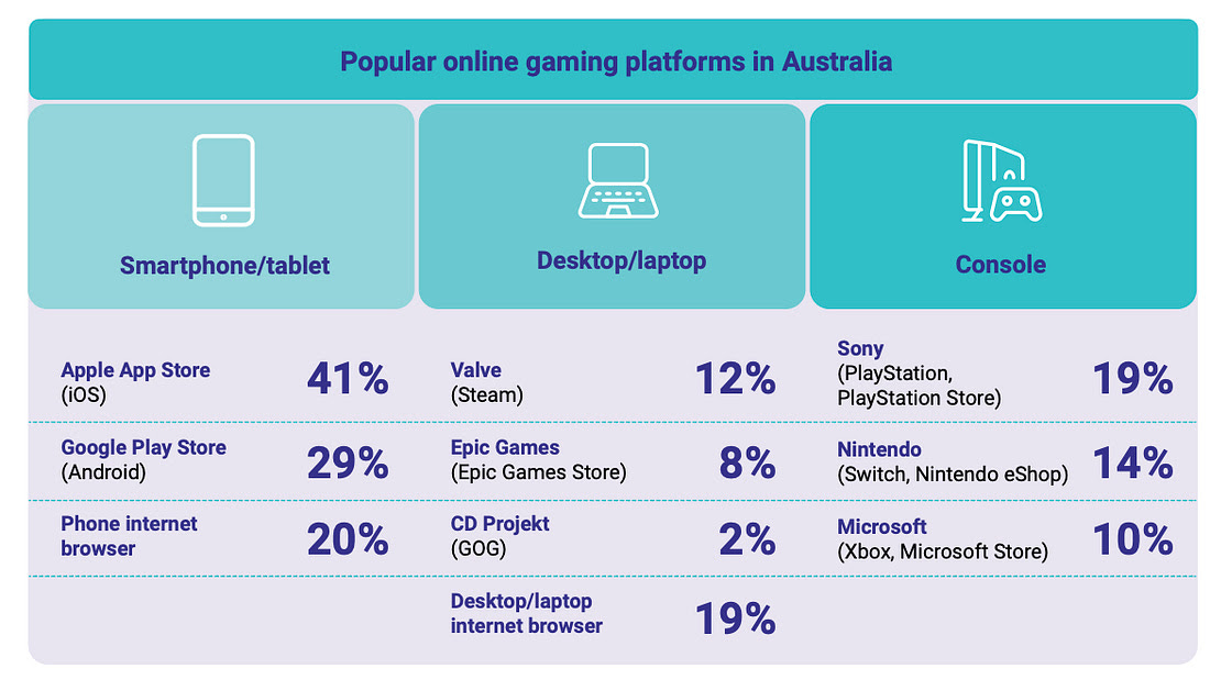 Sony is actually more popular than Nintendo and Microsoft in Australia as the console maker of choice. Steam also leads the Epic store here too. But again smartphones and Apple are the platform of choice for this market.