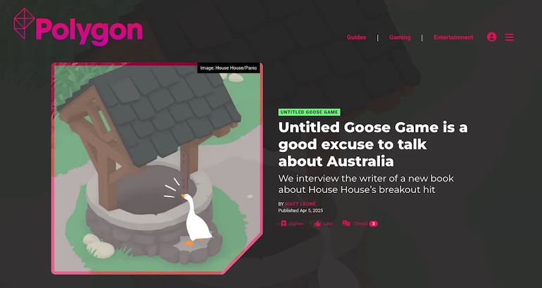 “I think it’s much easier for a major news organisation to publish something about a cartoon blue heeler dog, or a cheeky goose—regardless if it’s a videogame or not—because as people, we all like to feel validated by reading about the success of our own culture.”
