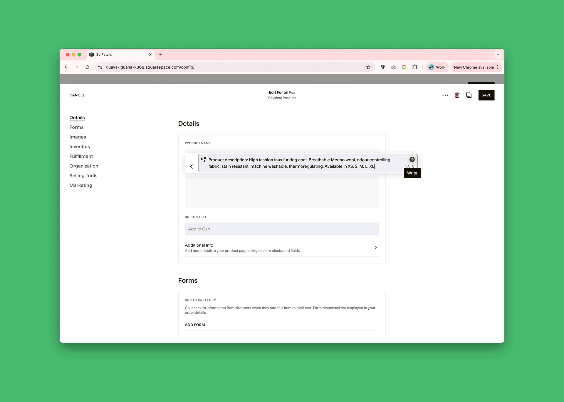 See AI Product Descriptions at work in this example we made: