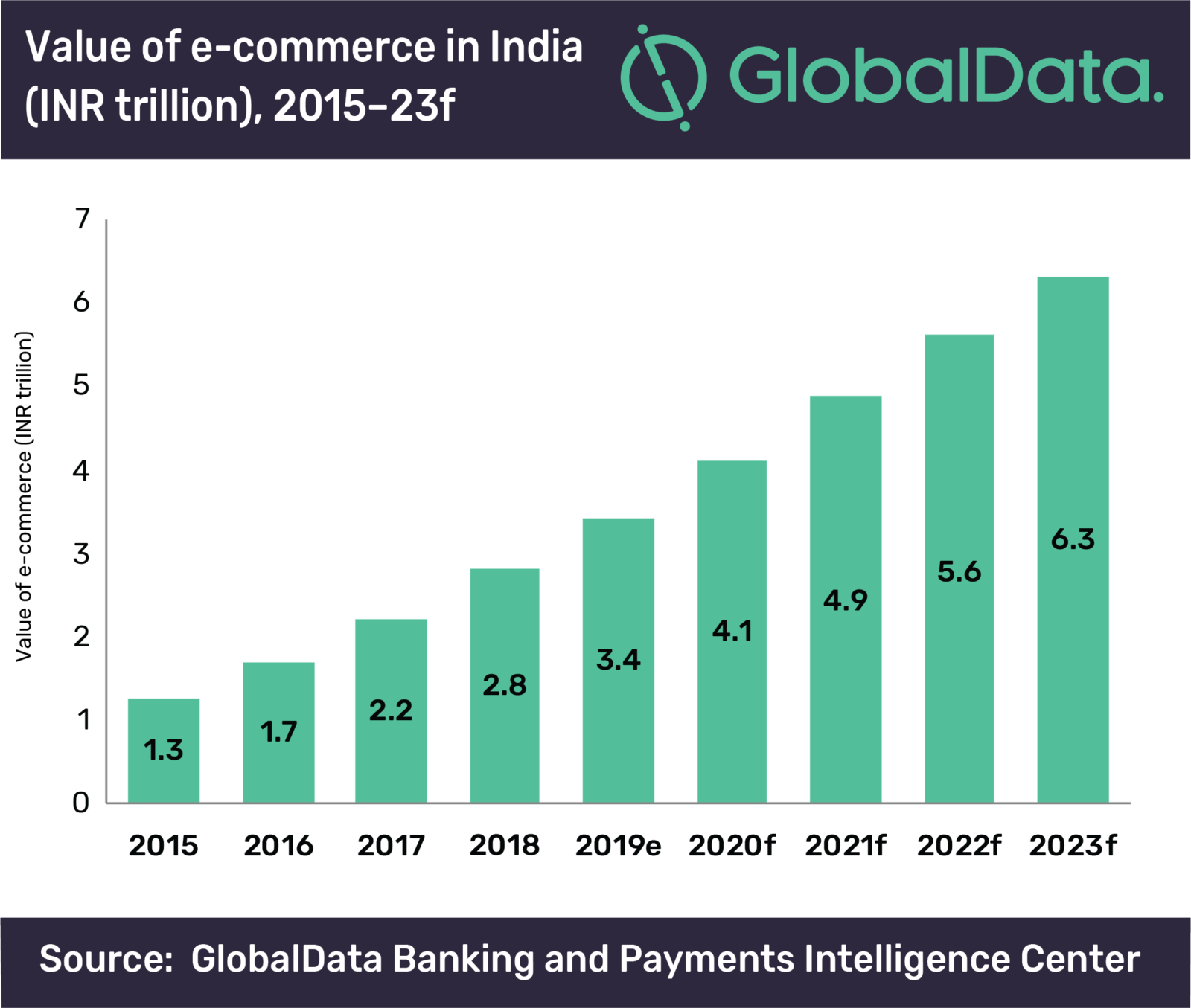 GlobalData’s latest report, ‘India Cards & Payments: Opportunities and Risks to 2023’, says the growth in the e-commerce market has been supported by rising Internet penetration rates, benefits such as discounts, faster delivery options offered by e-retailers and the rising consumer preference for online shopping.