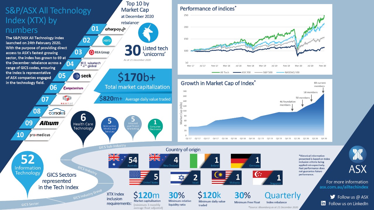 The index is rebalanced quarterly and when it launched, New Zealand-born Xero topped the list, followed by Computershare and Afterpay. At the December rebalance, Afterpay was well and truly top dog, although Xero has also continued to perform strongly.