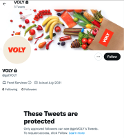 The Voly Twitter account @getVOLY is now locked with no followers.