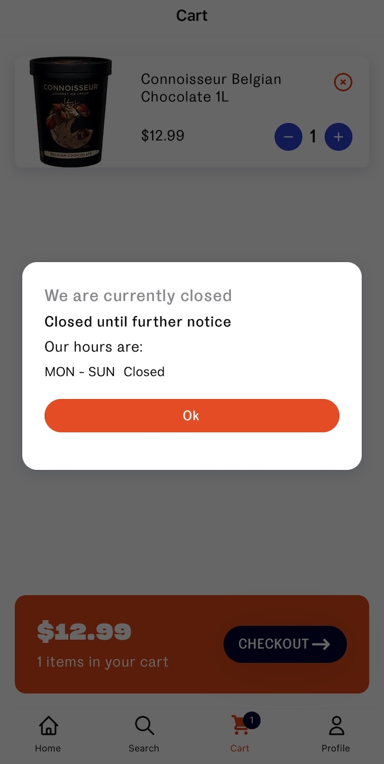 “Our hours are: Mon-Sun Closed” the app said when Startup Daily attempted to place an order.