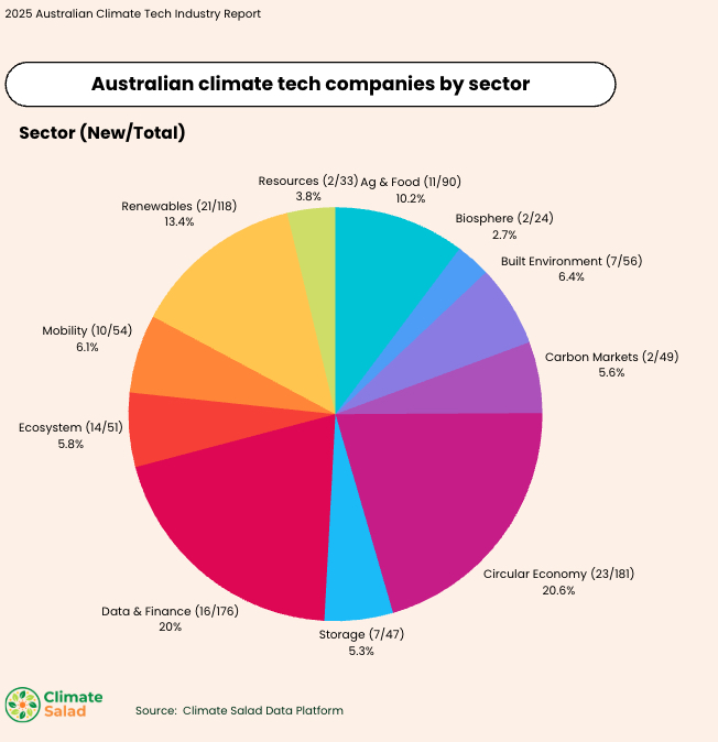 Climate tech by sector. Source: 2025 Australian Climate Tech Industry Report