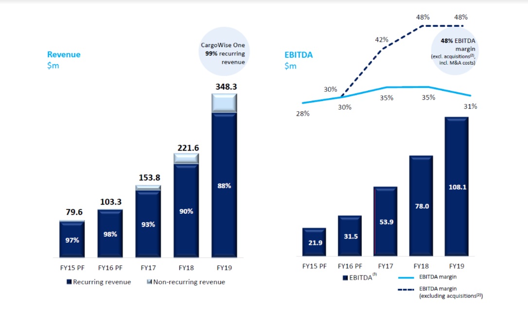 WiseTech (ASX: WTC) had predicted growth of 47-53% and expanded rapidly in Fy19, acquiring 15 companies in nine countries since July 1 last year, alongside a $300 million capital raise in March. Earlier this week the company announced its latest acquisition, US container yard and terminal management logistics firm Depot Systems.