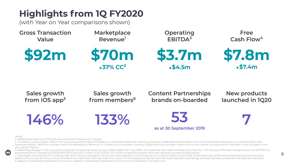 Source: Redbubble FY2020 Q1 investor presentation