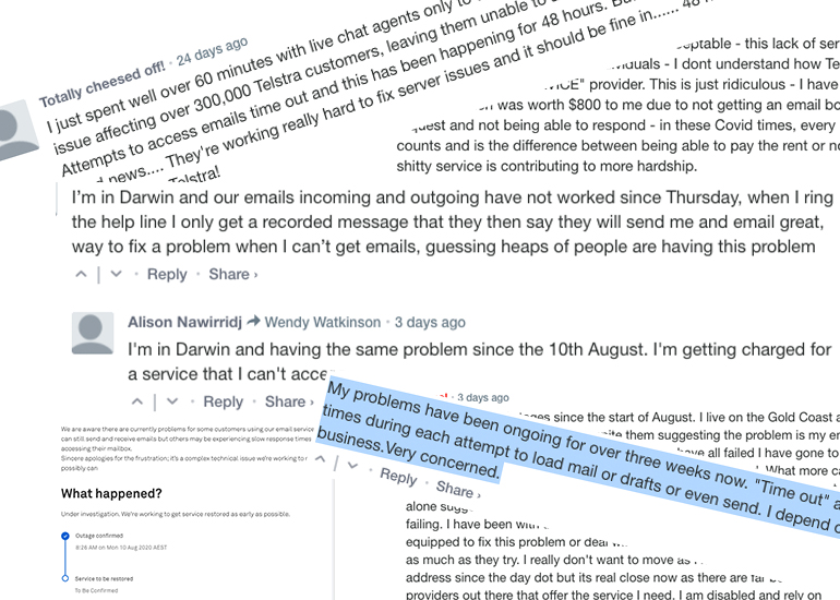 The outages are impacting users across the nation. Users litany of complaints includes a lack of response from Telstra regarding their issues, to being told the fault was user error, to promises of fixes that never occur.