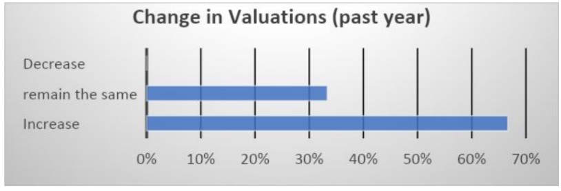 The average deal size has increased in the past 12 months, according to 64% of VCs (with the remaining 36% reporting no change, and none reporting a decrease).