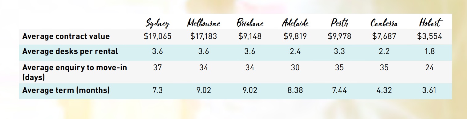 The figures are based on Office Hub FY2018-19 data from more than 1,300 providers and 5,000+ tenants in Australia.