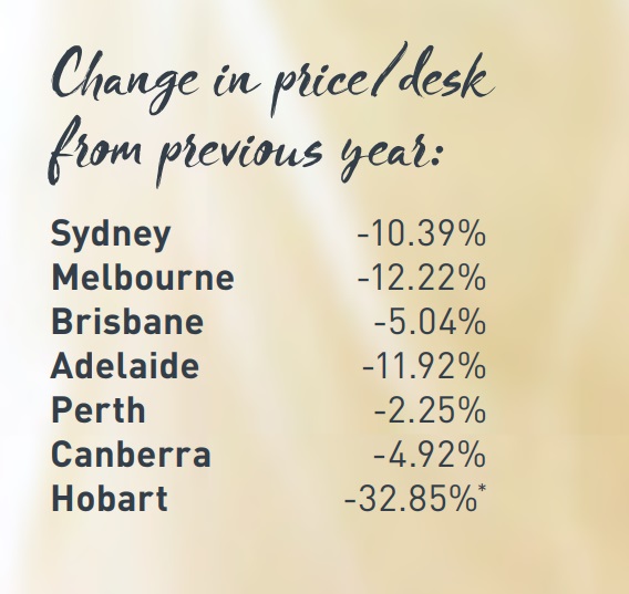 “The biggest impact will be price as the coworking industry in Australia will embrace never before seen growth in desks hitting the market,” the report says.