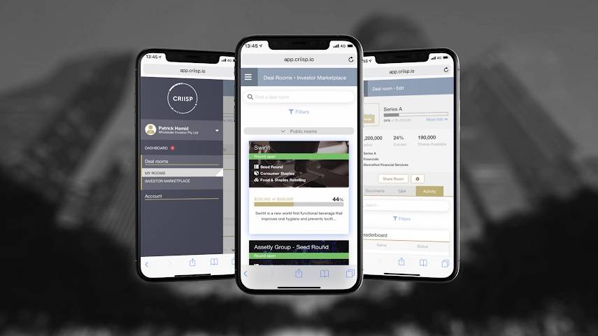 CRIISP’s key features include a simplified documentation structure and storage, access to a high net-worth investor marketplace, the ability to promote dealrooms to interest investors, investor activity tracking, question and answer features and direct messaging, the ability to issue share certificates, and multi-party digital signature completion.